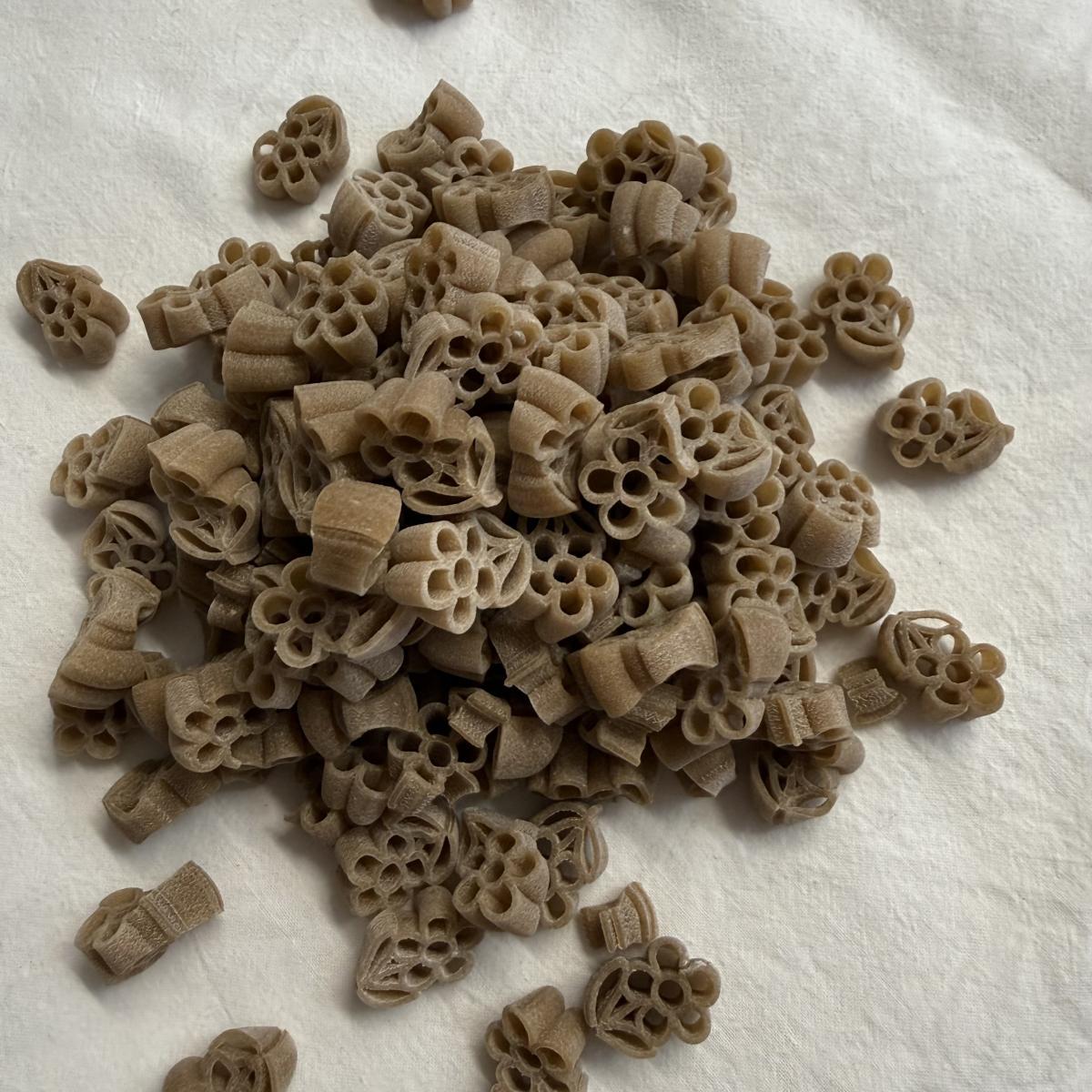 Spécialité à base de blé tendre transformée a la ferme, blé cultivé en agriculture raisonnée, séchage lent à basse température.